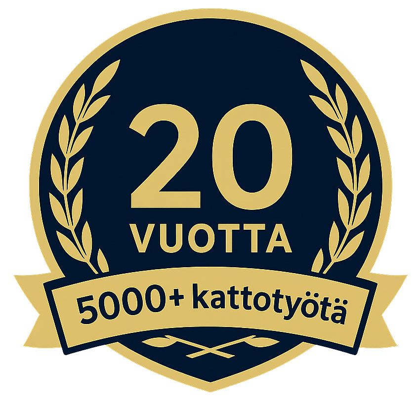 Olemme kotimainen kattoyritys, ja korjaamme kattoja 20 vuoden, ja yli 5 000 kattotyön kokemuksella. Teemme kattoremontit, korjaukset ja huollot omalla, kokeneella asentajatiimillä — ilman turhia välikäsiä — jotta laatu, turvallisuus ja aikataulut pysyvät meidän käsissämme alusta loppuun.